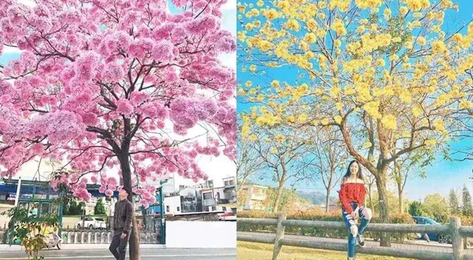 如果說粉嫩櫻花像是炸開滿天的爆米花,那么粉紅風(fēng)鈴木就是蓬松可愛的棉花糖云朵了!與櫻花花...